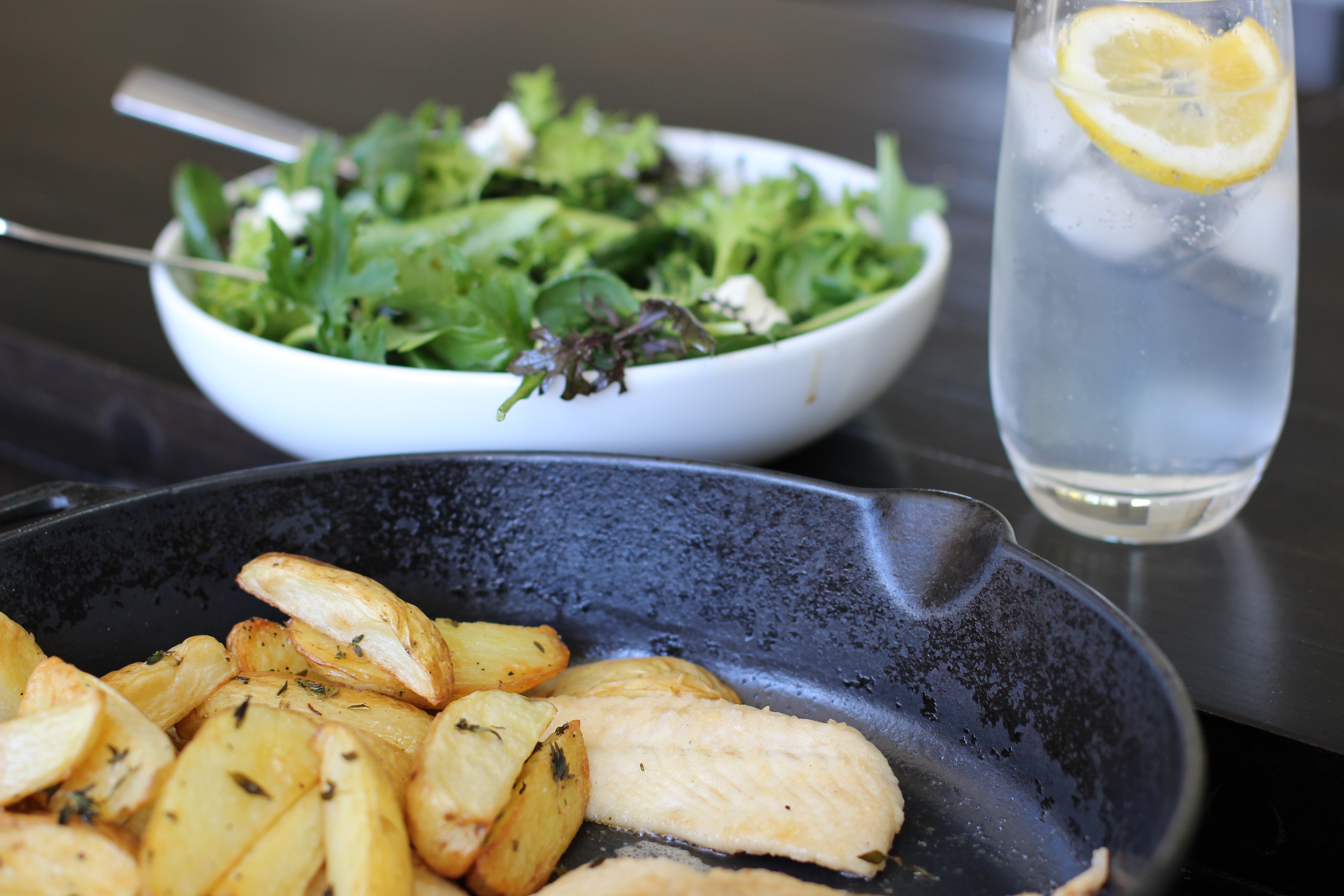 I serve this with my basic mesclun salad and my two ingredient dressing